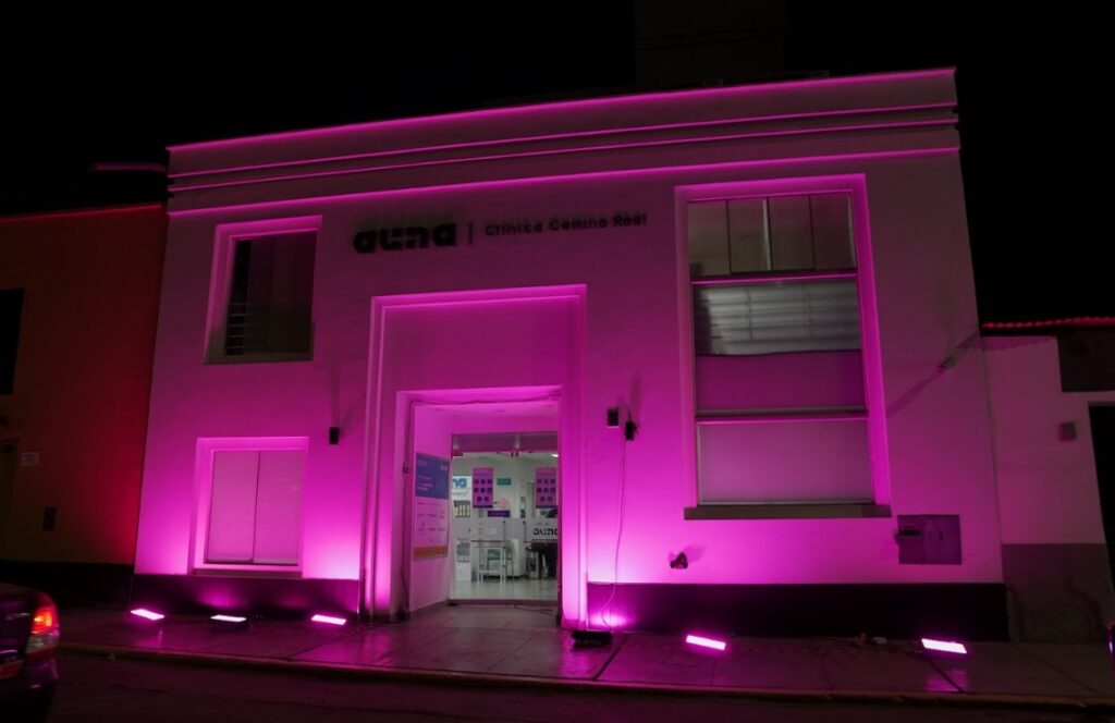 Mientras que las clínicas Oncosalud y la red de clínicas Auna se iluminaron de rosa, marcando uno de los momentos más significativos de la campaña,  el Centro de Bienestar Auna Miraflores y la sede Oncosalud ofrecieron experiencias inmersivas con túneles iluminados y pizarras magnéticas, donde los asistentes dejaron palabras de aliento y fortaleza.